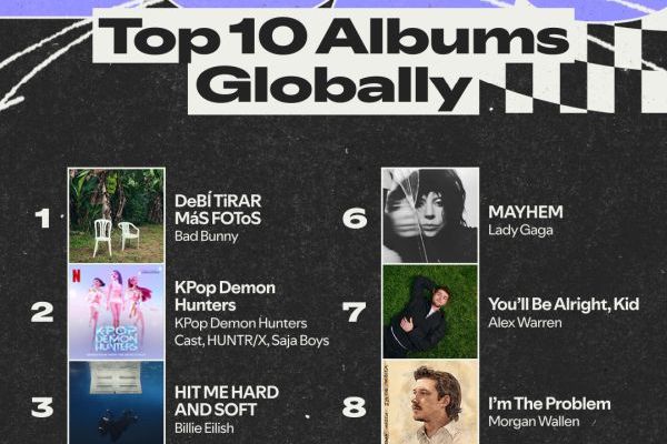 Com mais de 19,8 bilhões de streams globais, Bad Bunny é o Top Artista Global do Spotify em 2025 pela quarta vez, após ter conquistado o título também em 2020, 2021 e 2022.