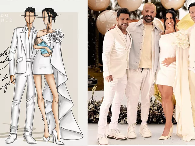 O estilista Eduardo Amarante assinou um figurino de noiva, sem saber que esse era o propósito final do evento mais esperado do fim de semana. Após revelarem que serão pais de uma menina que se chamará Clara, Zezé Di Camargo e Graciele Lacerda se casaram durante uma cerimônia surpresa, organizada pelo cantor. Amigo do casal há anos, ele desenhou o figurino dela especificamente para o chá-revelação, sem saber o que o sertanejo planejava. “Escolhi branco por ser algo neutro já que se tratava da revelação através de cores, como acontece em qualquer evento como este. Eu não sabia de nada, assim como todos os convidados. Só fiz um look que representasse a minha moda. No dia em que ela experimentou, eu falei que esse tipo de vestido tem confeccionado tendência para casamentos minimalistas. Acho que acabamos avançando o sonho dos dois sem consciência, mas acredito que Deus é muito atuante com isso, sempre”, declarou o estilista com exclusividade à Ana Maria Digital.