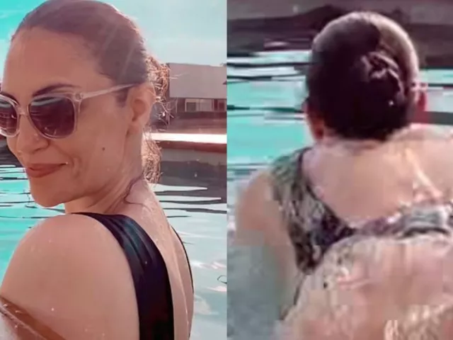 Na sequência, apresentadora colocou os óculos na borda da piscina e deixou os espectadores de queixo caído ao aproveitar o registro para dar um mergulho ousado. Com um salto para o fundo da piscina, Chris mostrou bumbum destacado durante o registro. Ela continuou posando após retornar a superfície ao som de ‘Andar com Fé’ de Gilberto Gil.