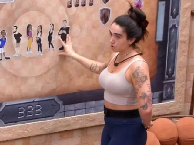 Com quatro alvos definidos, a nutricionista analisou quem poderia ser sua quinta opção, e apontou para o boneco de MC Bin Laden, com quem já se envolveu no reality show. Antes de chegar no nome do ponteiro, ela mostrou no painel tático seus outros possíveis indicados: Beatriz, Davi, Matteus, Alane.