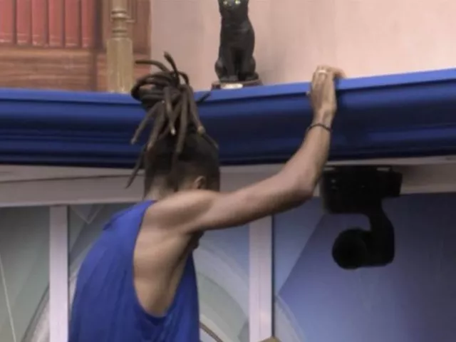 Lucas subiu nos ombros de Nizam, pegou o sapo com as mãos e o levou para a área externa da casa. Ele colocou o sapo na piscina depois de mostrar para os outros participantes.