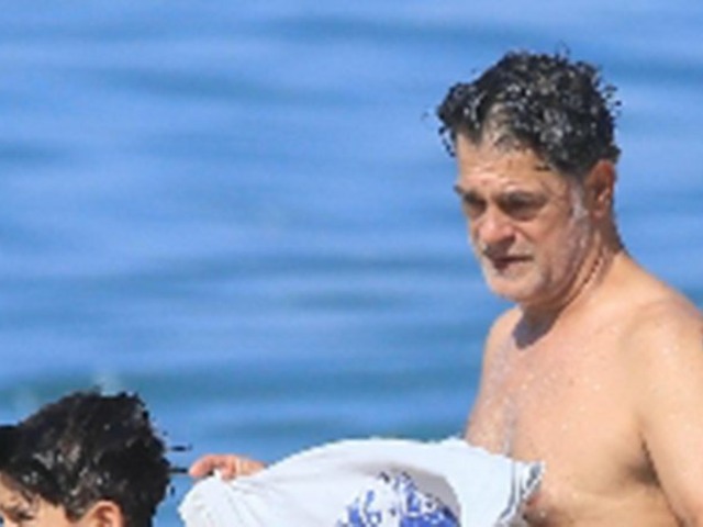 O artista deu um mergulho no mar com o herdeiro e os dois foram fotografados conversando na areia.