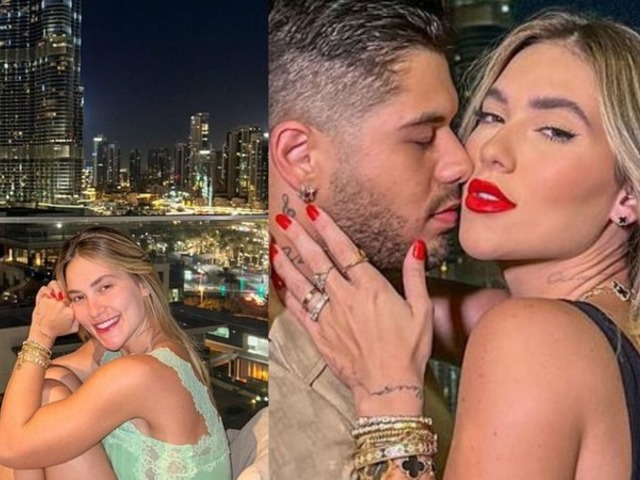 Juntinhos, eles surgiram em uma foto trocando um chamego digno de novela. Apaixonada, a loira recebeu um beijo na bochecha enquanto o amado a abraçava e aproveitava o momento a dois, de frente para o Burj Khalifa, nos Emirados Árabes.