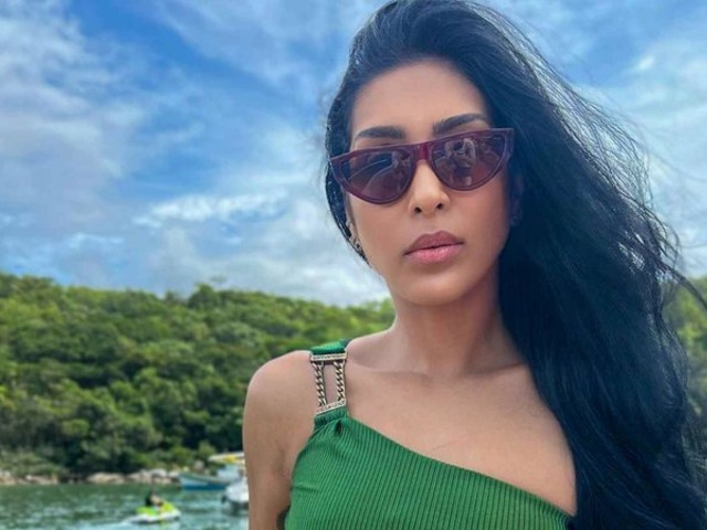 Amanda Djehdian (36) elevou a temperatura das redes sociais nesta quinta-feira, 30, ao compartilhar uma sequência de cliques esbanjando beleza durante um passeio de barco.
