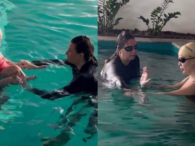 Karoline Lima diverte fãs ao mostrar aulas de natação com a filha, Cecília