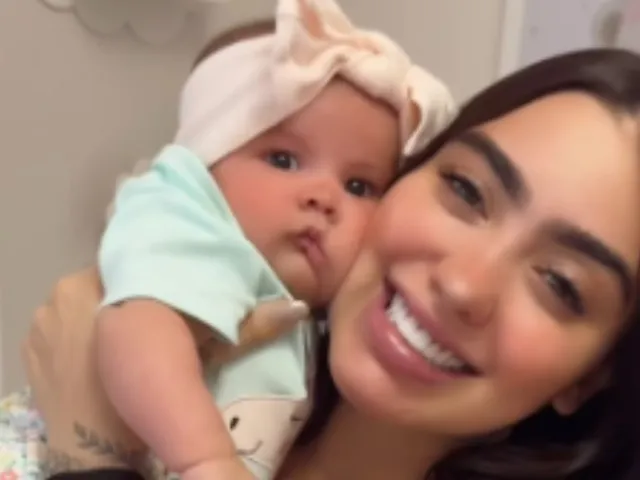 Nos stories de seu perfil oficial do Instagram, Mirella publicou as duas fotos juntas. Na primeira, sua filha apareceu com um lindo laço na cabeça, enquanto brincava com um chocalho. Já na segunda foto, a artista apareceu toda sorridente, também com um laço na cabeça, quando era bebê.