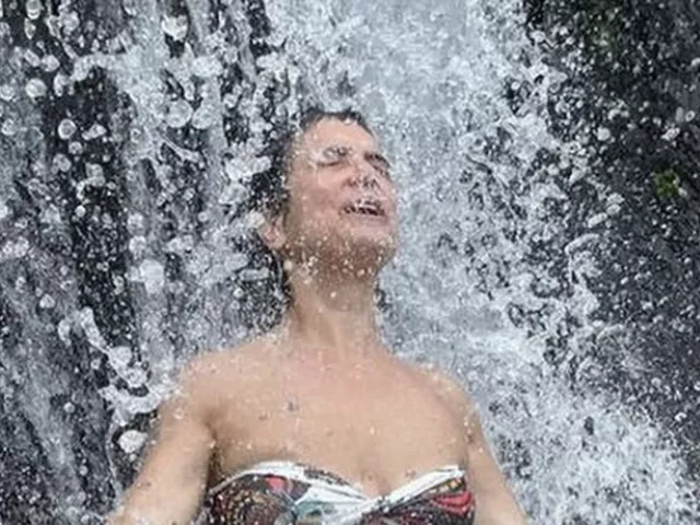 Neste final de semana, ela foi tomar um banho de cachoeira para renovar as energias e se refrescar. Com isso, a comunicadora foi fotografada com biquíni no estilo tomara que caia e ostentou toda a sua beleza.