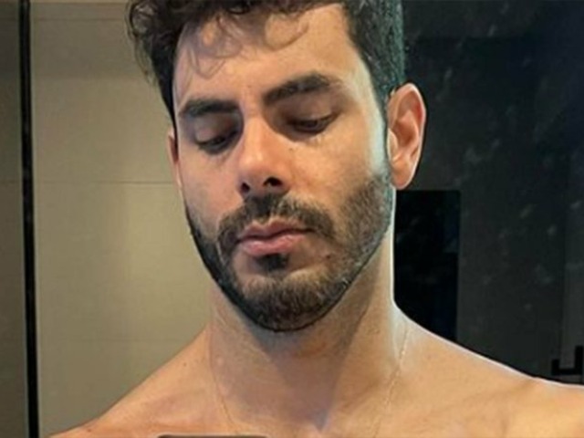 Na foto, ele posou na frente do espelho e deixou o peitoral e a barriga sarada à mostra. “Legenda estraga”, brincou ele sobre a foto ousada.
