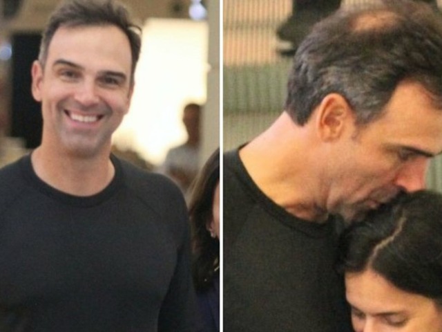 Os pombinhos foram flagrados enquanto caminhavam de mãos dadas no centro comercial em um clima bem romântico. Sorridentes, o contratado da Globo chegou a beijas os cabelos da amada e esbanjar simpatia para os fotógrafos.