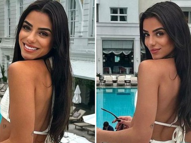 Em Copacabana, a ex-sister se clicou usando uma roupa de banho de tricô e uma saia também do mesmo tecido. A transparência e os furinhos fizeram com que as intimidades da famosa marcassem no tecido, principalmente o bumbum, que ficou todo à mostra quando a morena virou de costas.