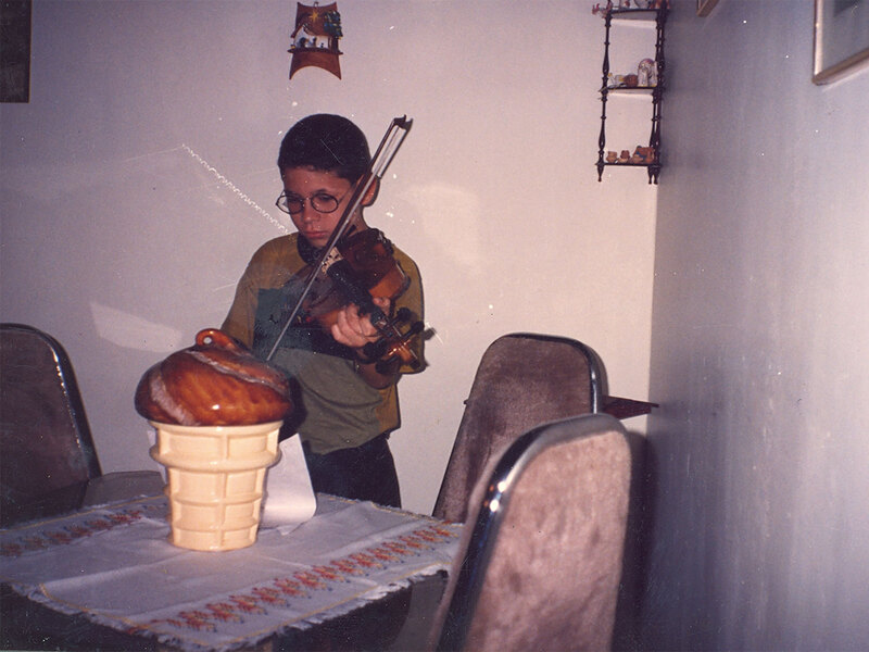 O jovem Gustavo com seu primeiro instrumento, o violino