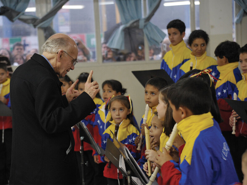 Em 1975, o Maestro Abreu criou um programa inovador de educação musical, financiado pela divisão de serviços sociais do governo venezuelano, para oferecer educação musical gratuita a todas as crianças, independentemente de sua condição socioeconômica. Acreditando que a música é um direito universal, o Maestro Abreu considerava a educação musical essencial para o bem-estar de crianças em situação de vulnerabilidade, proporcionando inclusão social e desenvolvimento pessoal por meio da prática musical compartilhada. Como a música transmite harmonia e compaixão mútua, ele estava convencido de que ela poderia unir comunidades. Chamado de El Sistema, o programa cresceu e se tornou uma rede nacional com centenas de centros musicais, alcançando centenas de milhares de crianças de famílias carentes. O Maestro Gustavo Dudamel é, indiscutivelmente, o ex-aluno de maior sucesso do El Sistema.