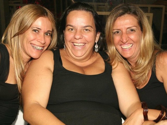 Na imagem, Cynthia aparece irreconhecível ao lado de duas amigas, quando antes de realizar o procedimento.