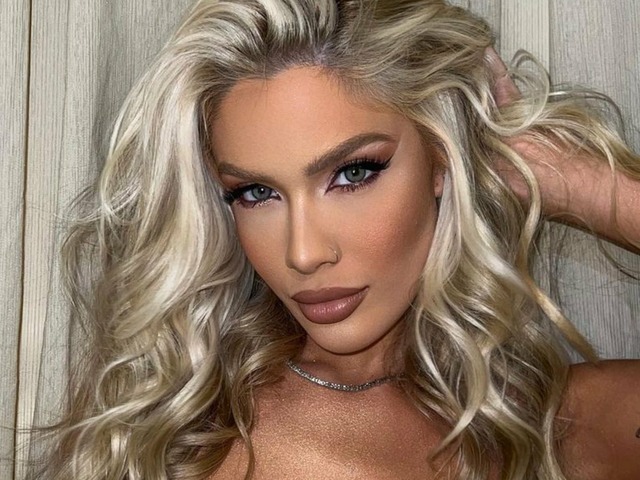 Nas imagens, a modelo aparece na beira da piscina, em um cenário paradisíaco, usando um maiô megacavado rosa, e quase mostrou demais.