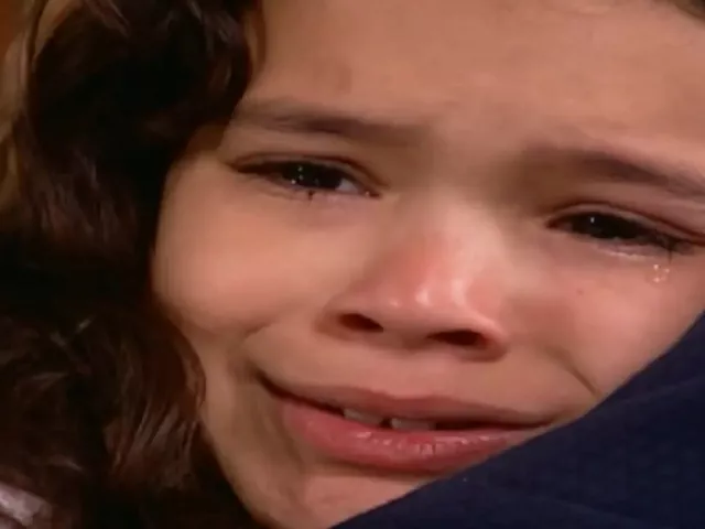 “Não quero volta para casa. Não é mais minha depois que mamãe morre. Não quero mais ficar lá com a minha vó“, desabafa a menina. Teo, então, tenta lhe consolar, mas, sem sucesso.