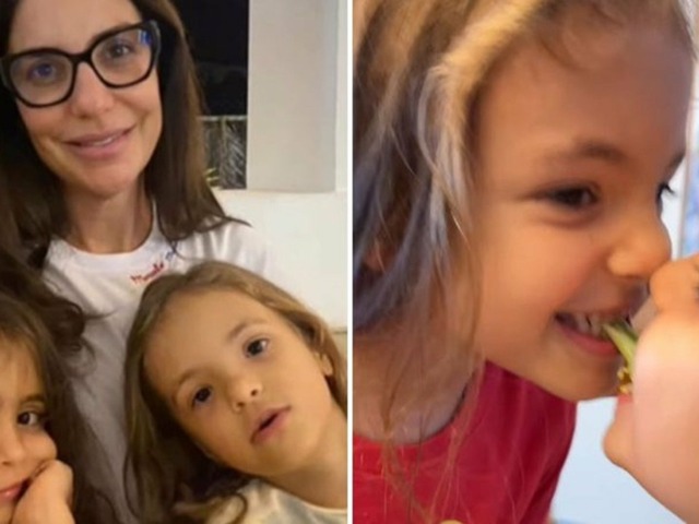 As herdeiras aparem no vídeo comendo couve-flor e brócolis. “Aqui em casa a briga é pela salada“, escreveu Daniel na legenda do vídeo, ressaltando a preferência por alimentos saudáveis.