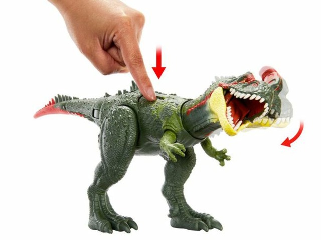 As figuras de ação de Jurassic World Rugido Selvagem têm sons de rugido e movimentos de ataque. Os dinossauros têm um movimento de ataque específico de cada espécie, desde chicotes de cauda surpresa até mastigações de pescoço e cabeçadas, ideal para criar uma batalha realista. Basta pressionar a área do quadril para ativar. Para uma brincadeira ainda mais realista, digitalize o código de rastreamento oculto do dinossauro no aplicativo gratuito Jurassic World Facts.