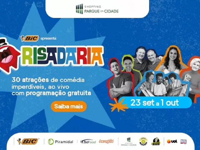Localizado na zona sul da capital paulista, o Shopping Parque da Cidade recebe, de 23 de setembro a 01 de outubro, o Festival Risadaria, que foi criado pelo humorista Paulo Bonfá e é reconhecido como um dos principais eventos de humor da América Latina. Com apresentações pensadas para encantar tanto o público infantil, quanto o adulto, o evento promete proporcionar muita risada e momentos divertidos, garantindo uma experiência única e reforçando o compromisso do empreendimento com a cultura, um de seus principais pilares.