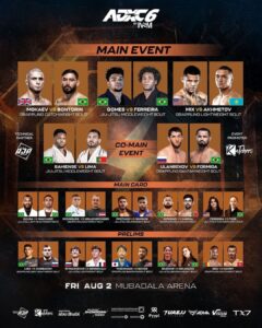Para a alegria dos fãs de lutas ao redor do mundo, a organização também revelou o card completo do ADXC 6. Com 15 duelos e 10 países representados na escalação, o card é oficialmente o maior da história do ADXC e vem como prova do crescimento do torneio desde sua primeira edição, realizada há um ano.