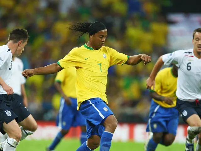 O gol histórico de Ronaldinho contra a Inglaterra na Copa do Mundo de 2002.