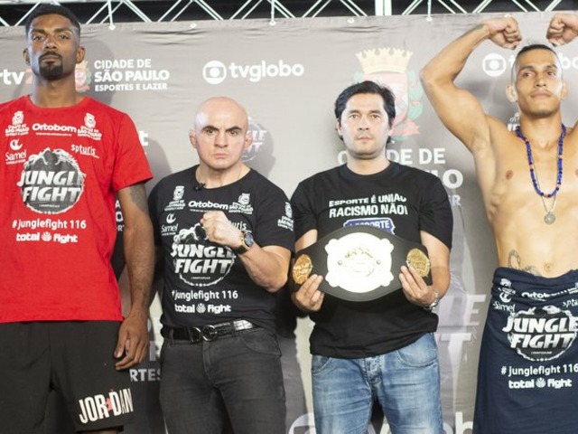 Em sua 116ª edição, o Jungle Fight coloca dois cinturões em disputa, neste sábado, na capital paulista. Na luta principal, o campeão dos meio-médios Vanderlei Soul Glo defende o título diante de Arcangelo Anjo. Na coprincipal, Elora Dana, dono da coroa dos pesos-moscas feminino, tenta manter o posto no duelo contra Faelly Vitória. Os quatro bateram os pesos de suas respectivas categorias na pesagem oficial realizada nesta sexta-feira.