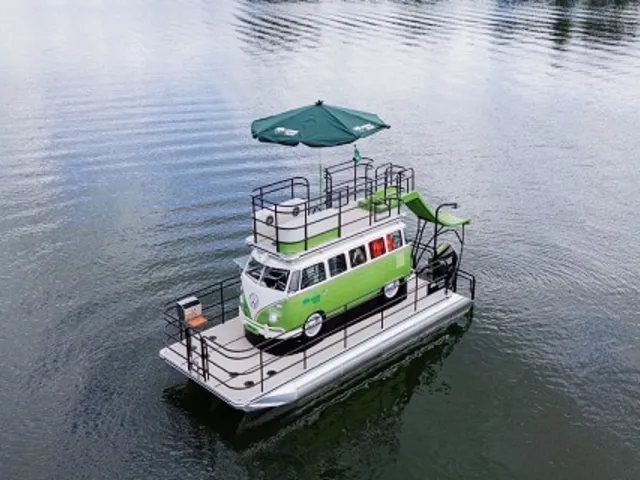 Única no mundo, essa é uma das embarcações mais originais do mercado náutico: uma réplica fiel da clássica Kombi Corujinha 1974, construída em fibra de vidro sobre plataforma de alumínio flutuante (pontoon). Resultado da parceria entre a Procópio Luxury Vehicles e o estaleiro Fluvimar, o modelo de 6,40 metros une nostalgia e lazer em grande estilo, com capacidade para até 20 passageiros e motorização Mercury V6 de 200 hp. Possui visual retrô em verde claro, banheiro, churrasqueira, chuveiro externo, sistema de som, sombreiro removível, mesa para DJ e até um tobogã aquático que parte do teto direto para o mar.
