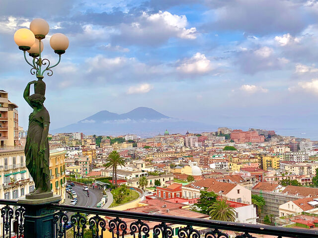Assim como na maior parte do litoral, Nápoles, a cidade mais densamente povoada da Itália, foi construída sobre as colinas. O centro da cidade, que começa com um café e um doce no histórico Café Gambrinus, atrai você magneticamente em direção ao porto, passando pelo histórico Teatro di San Carlo, a casa de ópera mais antiga da Itália em funcionamento contínuo. Mais antigo que o La Scala de Milão, foi construído no século XVIII, quando a ópera napolitana dominava o mundo. O caminho, ao longo da Via Vittorio Emanuele II (ele foi o primeiro rei da Itália independente, por isso está entronizado em todas as cidades e vilas), continua em direção ao Castel Nuovo — um castelo medieval lindamente preservado e galeria de arte — e ao porto. Um dos maiores da Itália, é daqui que você pode pegar um ferry para a Sicília, Sardenha, Capri, Sorrento e Amalfi. É também um cais para os mega navios de cruzeiro, os hotéis flutuantes de Las Vegas, como o Royal Caribbean Symphony of the Seas (5.448 hóspedes).