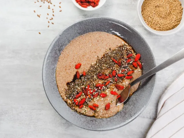 Mingau de farinha de linhaça com goji berry e chia