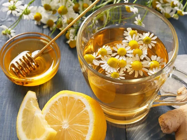 Chá de camomila, limão-siciliano e gengibre