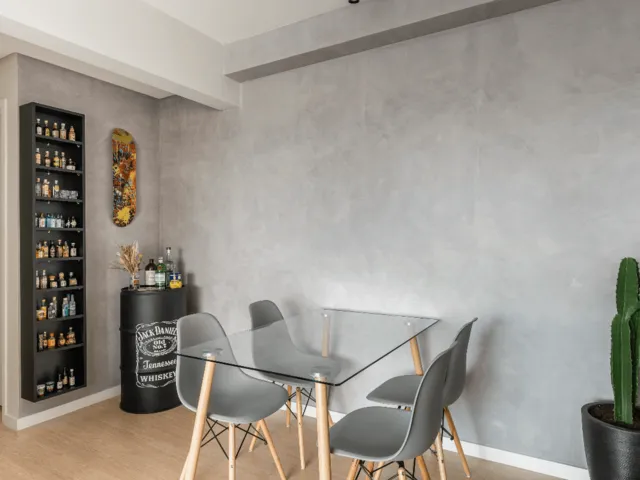 Quando o morador é colecionador, transformar essa paixão em parte da decoração é um gesto de autenticidade. Miniaturas, souvenirs de viagens ou garrafas especiais ganham destaque quando dispostos de maneira estratégica, seja em uma estante lateral, em nichos planejados ou em uma parede dedicada. Essas pequenas curadorias trazem vitalidade aos ambientes e despertam a curiosidade de quem visita, sem comprometer a harmonia visual.