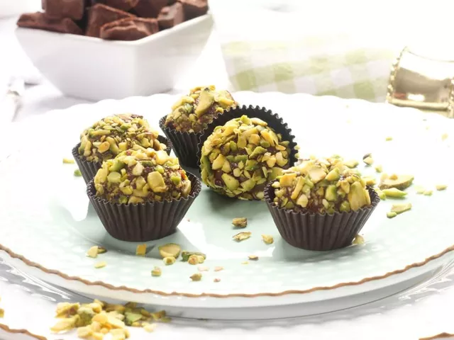 Bombom de chocolate com recheio de pistache