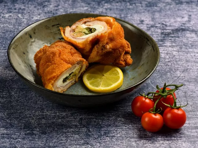 Frango empanado e recheado