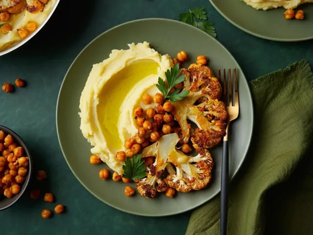 Purê de couve-flor com grão-de-bico crocante