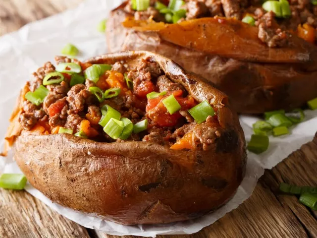 Batata-doce recheada com carne moída