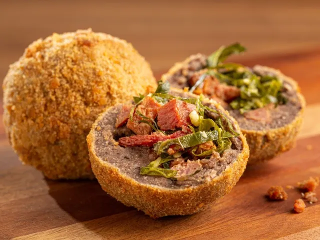Bolinho de feijoada com couve