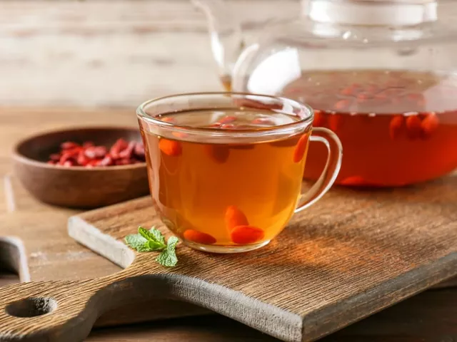 Em uma panela, coloque a água e leve ao fogo médio para ferver. Coloque as goji berries e desligue o fogo. Tampe e deixe em infusão por 10 minutos. Sirva em seguida.