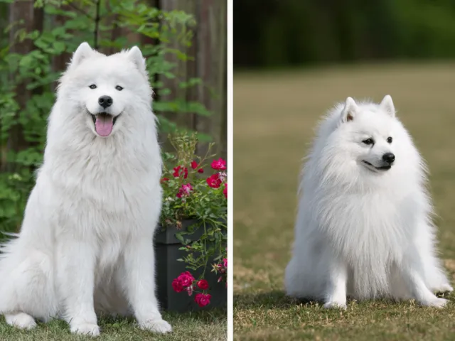 Abaixo, confira algumas diferenças entre os cães das raças samoieda e spitz japonês!