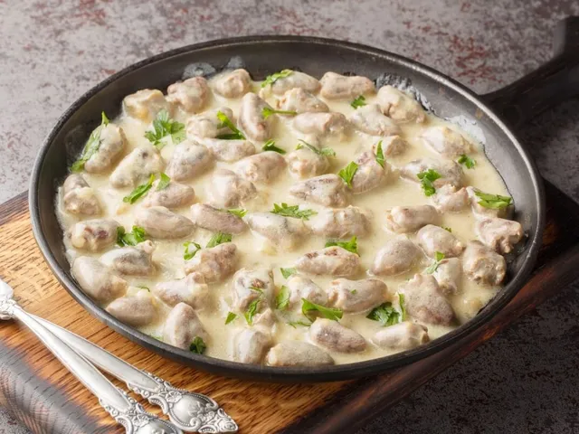 Em uma frigideira, coloque a manteiga e leve ao fogo médio para aquecer. Adicione a cebola e o alho e doure. Acrescente os corações de frango e refogue até dourarem. Em um recipiente, dilua o amido de milho no leite e despeje sobre os corações. Tempere com sal e pimenta-do-reino. Cozinhe até o molho reduzir, mexendo sempre. Desligue o fogo, polvilhe com salsinha e sirva em seguida.