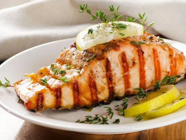 Salmão grelhado com tomilho e limão