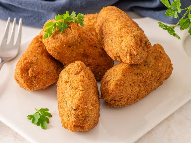 Em uma panela, coloque o óleo e leve ao fogo médio para aquecer. Depois, frite os bolinhos com a ajuda de uma escumadeira até dourar e coloque-os sobre um recipiente com papel-toalha para absorver o excesso de óleo. Repita o processo com todos os bolinhos, espere esfriar e sirva em seguida.