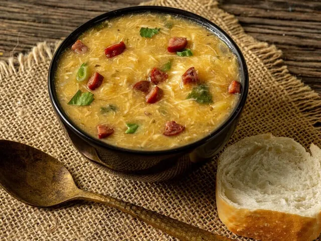Sopa de mandioquinha com frango e bacon