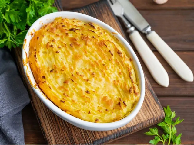 Escondidinho de mandioca e cogumelo