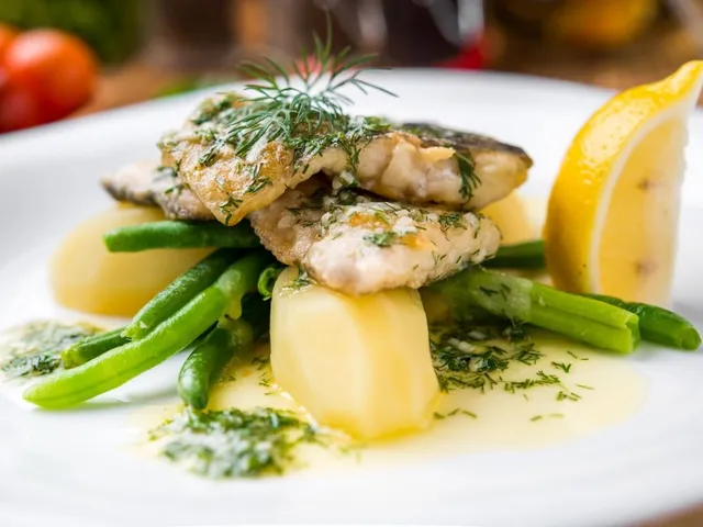 1. Peixe com batata, vagem e molho de limão