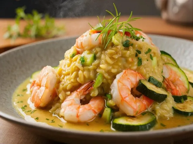 Risoto de camarão com abobrinha