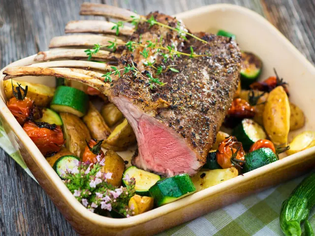 1. Carré de cordeiro assado com vegetais