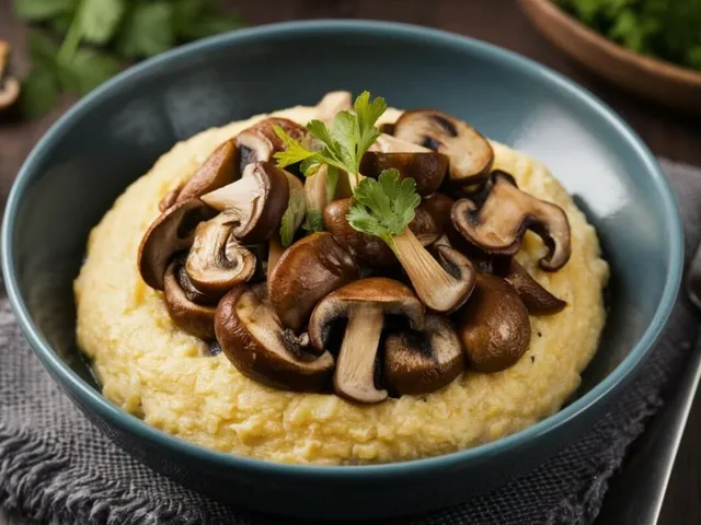 Polenta com cogumelo salteado