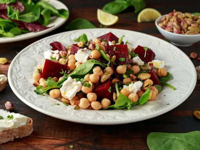 Salada de grão-de-bico com queijo e beterraba
