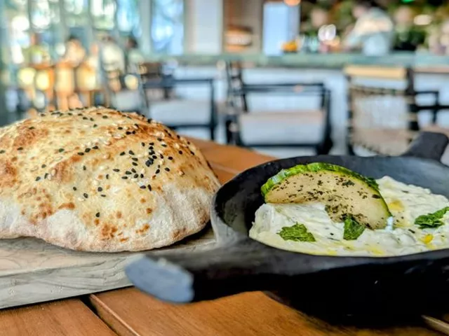 Como entrada, o creme azedo, que vem com pão pita quentinho, conquista pela suavidade. Guarde espaço para a sobremesa, pois a Basque Cheesecake é deliciosa. Tem textura cremosa e um toque levemente queimado na superfície.