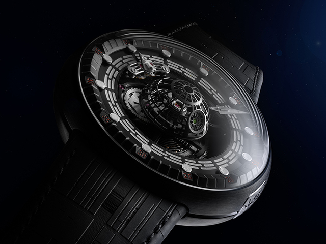 Pense em algo tão difícil de fazer quanto um relógio suíço. Talvez só a Estrela da Morte, a estação espacial/arma letal do império em Star Wars. Bom, uma relojoaria suíça resolveu juntar as duas coisas.9 lições de vida que você pode aprender com Star WarsDicas para escolher um relógio perfeitoChamado de Death Star Tourbillon, esse relógio recém-lançado pela Kross Studio é um exemplo impressionante de alta relojoaria. Como tal, tem um conjunto de complicações (os mecanismos internos que não servem para medir as horas, mas complementam o relógio) em visual bastante ameaçador – como o da arma gigante.Com uma caixa de titânio preto de 45 mm, o turbilhão (o mecanismo responsável por funcionar como pêndulo interno, aumentando a precisão do relógio) apresenta uma pequena gaiola em forma de Estrela da Morte, que faz uma revolução por minuto. Os ponteiros, com o formato de Destroyers Imperiais, foram fixados em uma tela periférica que também orbita 360 graus ao redor do turbilhão.O movimento interno pode ser visto através do mostrador em cristal de safira e possui engrenagens distintas com o emblema do Império. A reserva de marcha (o movimento que mantém o relógio funcionando sem precisar dar corda) é de cinco dias. Mas ele pode ser carregado manualmente com um anel na parte posterior da caixa.O relógio inspirado em Star Wars também vem com dois botões na parte posterior da caixa que permitem ao usuário trocar as pulseiras sem muito esforço. As opções incluem uma de borracha preta, outra de couro cinza (ambas com a Estrela da Morte em relevo) e uma de borracha vermelha.Edição de colecionadorO relógio foi tão pensado para colecionadores e fãs de Star Wars que vem com um pedaço da história do cinema: o “cristal kyber” usado para alimentar o feixe mortal da Estrela da Morte na trama original – e visto principalmente em “Rogue One: uma história Star Wars”.O conjunto vem em uma caixa que imita os containers onde os cristais são transportados. Dentro, são nove compartimentos de armazenamento contendo: o relógio Death Star Tourbillon, três conjuntos de pulseiras e o genuíno cristal kyber usado no filme.A relojoaria está fazendo apenas 10 conjuntos desse inspirados na Estrela da Morte, numerados. O que significa, claro, que não serão baratos. Cada um será vendido por 150 mil dólares – então é melhor usar a Força para conseguir um.