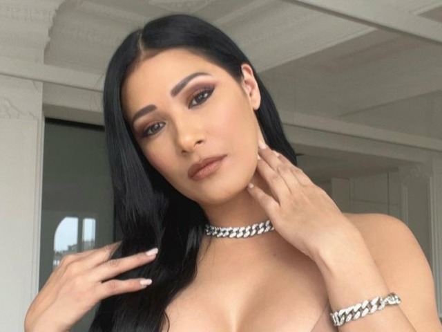 Sensual, a artista escolheu vestir um corset justíssimo que quase fez com que seus seios ficassem à mostra.